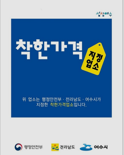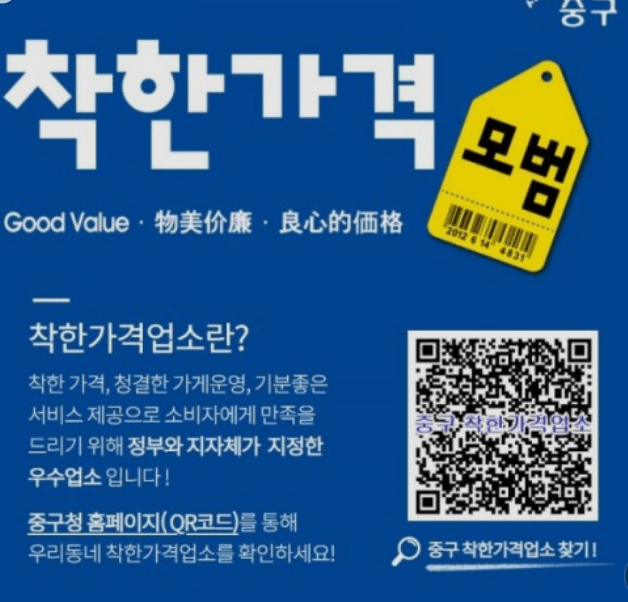 주변 지역의 평균 판매 가격에 비해 저렴한 가격을 유지하는 곳을 정부에서 '착한 가격업소'라는 제도를 통해 인증해 주고 있습니다.